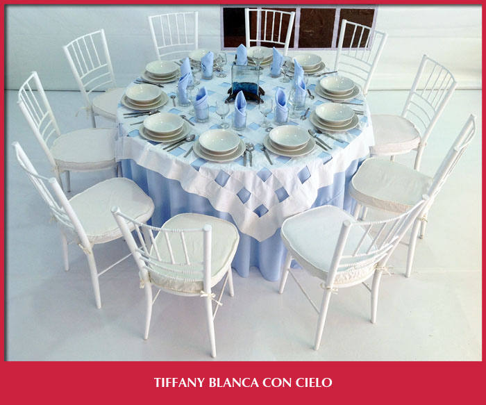 Incluye la Renta de 10 Sillas Tiffany, una Mesa con Mantel de Color y Cubre Mantel